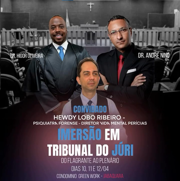 O Dr. Hewdy Lobo vai aprofundar a atuação da assistência técnica em psiquiatria forense no plenário do júri, ao lado de algumas das maiores autoridades do Direito Criminal no Brasil